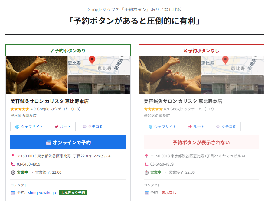 Googleマップ上に予約ボタンが表示されていると、患者さんは視覚的に「この院はすぐ予約できる」と判断できます。 特に、しんきゅうコンパス利用者の83.8%はスマホユーザーのため、Googleマップは重要です。