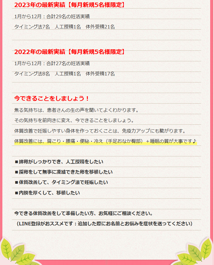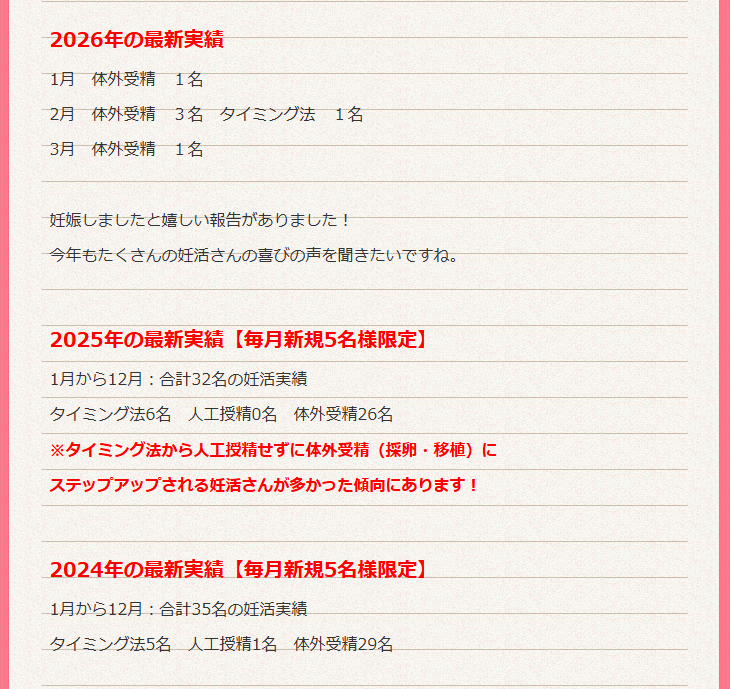 ホームページに妊活実績を詳しく掲載しております♪