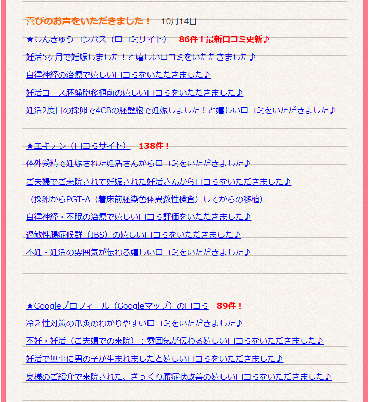 不妊妊活(鍼灸×整体×冷え性特化)コースでの口コミありがとうございました。