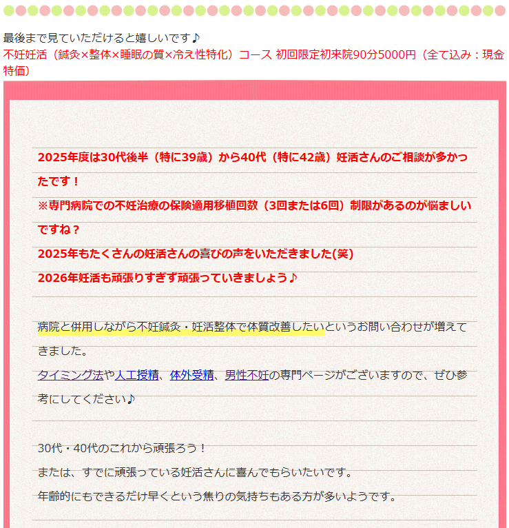 ★ぜひ不妊鍼灸妊活整体HPをみてください