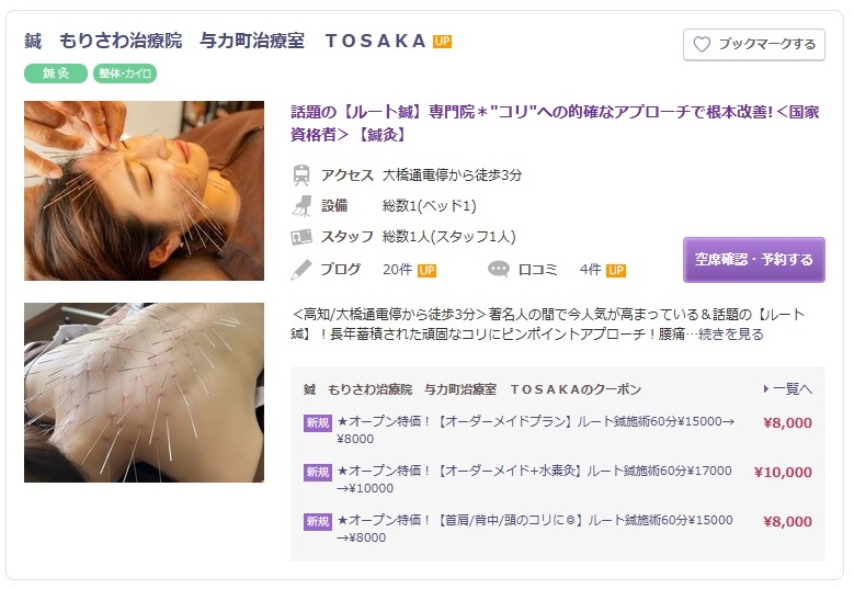 「高知市 鍼」 で検索 → ホットペッパービューティから