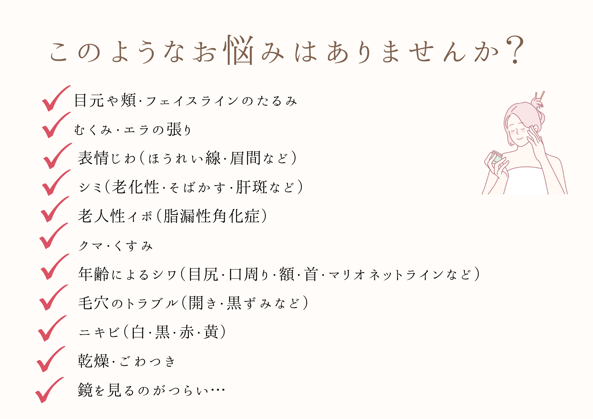 シミ・しわ・たるみなどの肌悩みはもちろん、