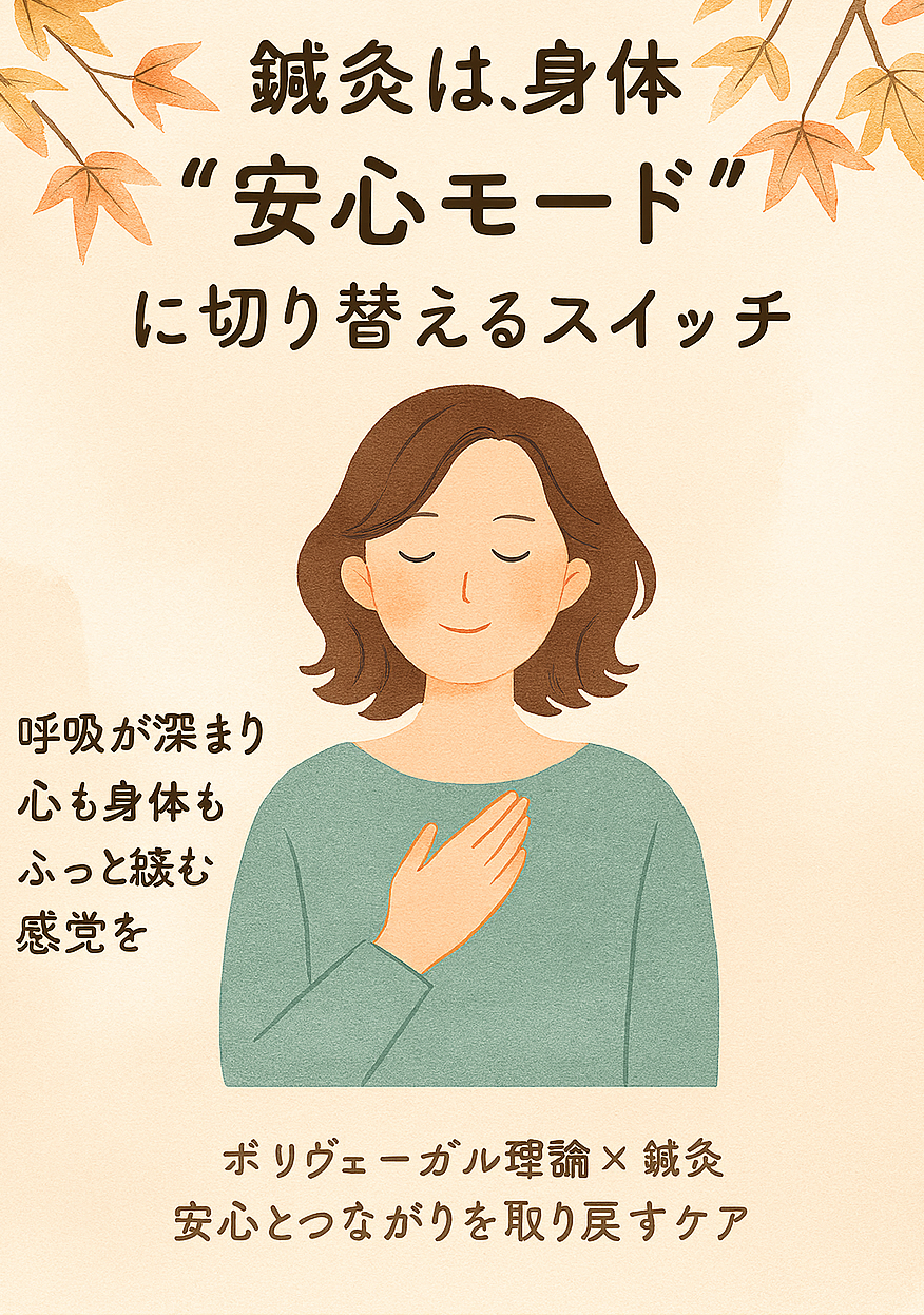 鍼灸は、この迷走神経にやさしく働きかけ、体を“安心モード”に切り替えるお手伝いをします。