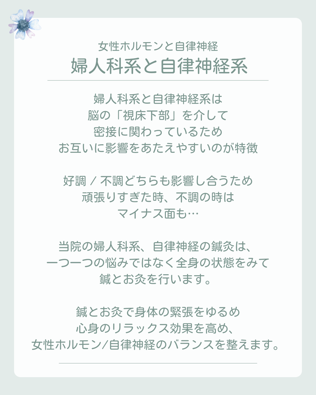 婦人科系の体質改善~身体が持っている力を引き出す鍼灸
