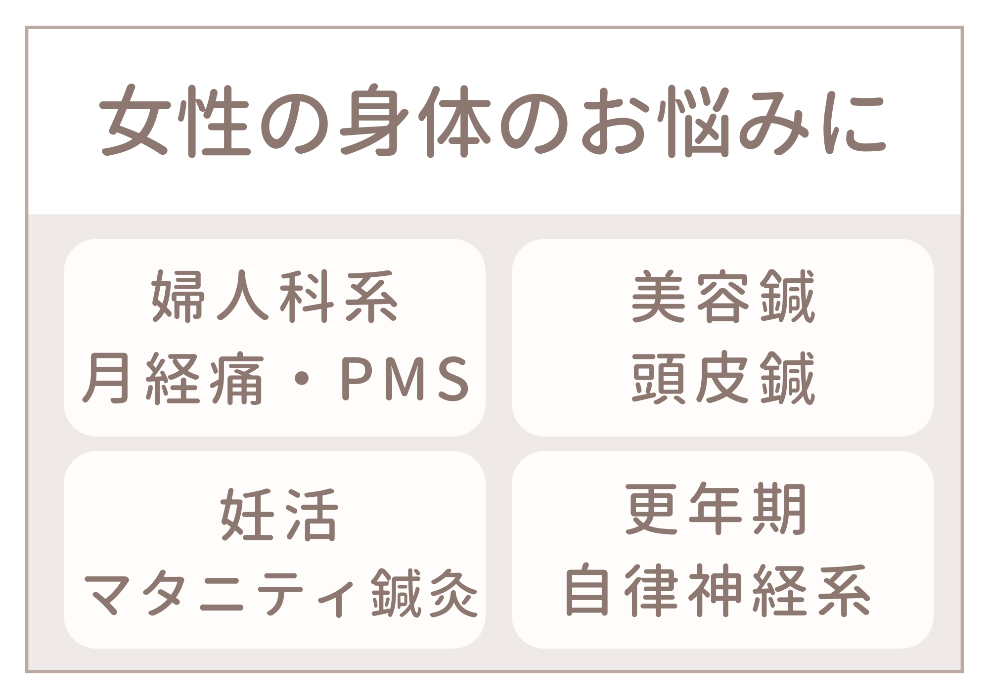 女性の身体のお悩みに 婦人科系・妊活・美容鍼|女性鍼灸師が1対1の治療