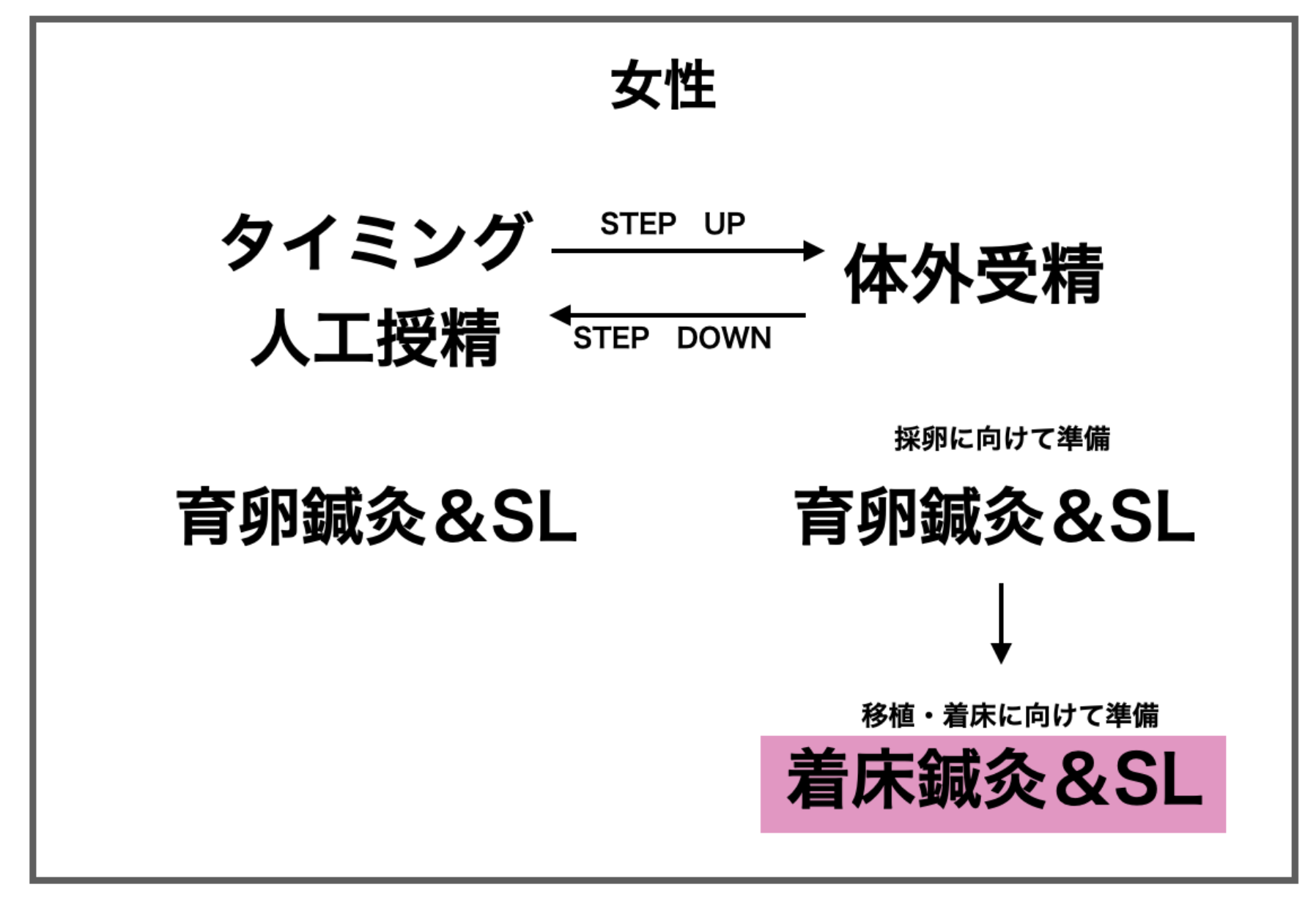 ※「着床鍼灸」と「育卵鍼灸」ともに、基本的にどの治療段階でも鍼灸治療の併用は可能です。