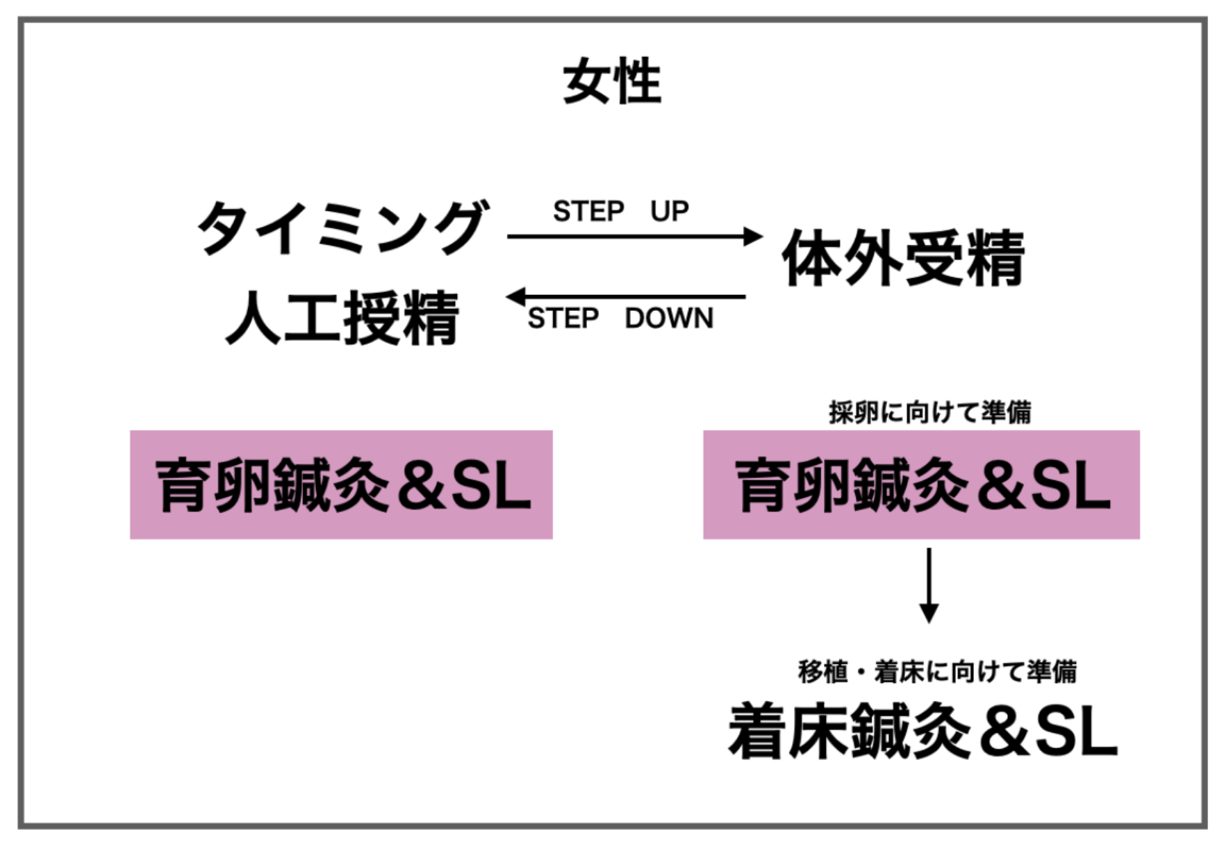 ※「着床鍼灸」と「育卵鍼灸」ともに、基本的にどの治療段階でも鍼灸治療の併用は可能です。