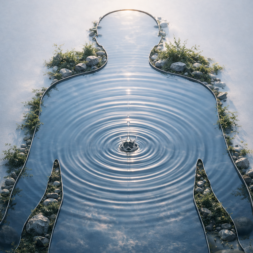 人の形をした水を湛える池に、ポンッと小石を投げ入れると、静かに波紋が広がっていきます。