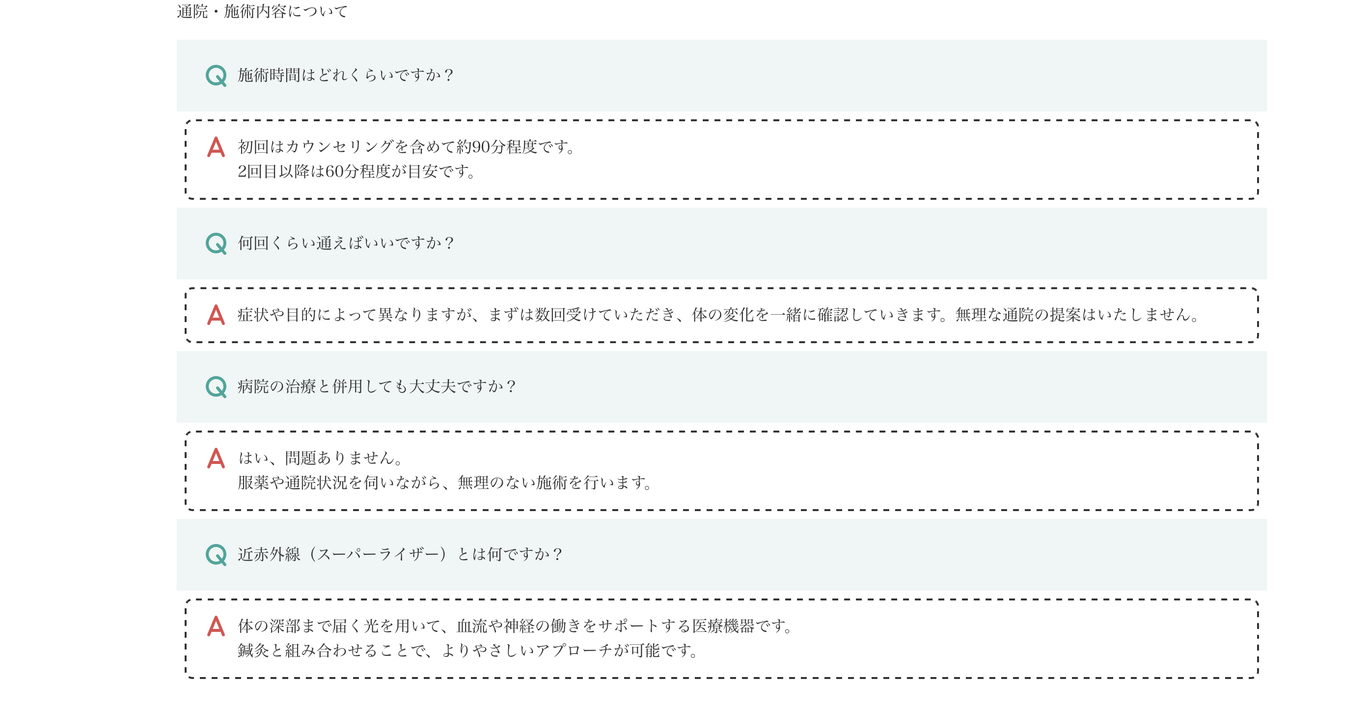 体のこと、通院のこと、施術以外のことでも、