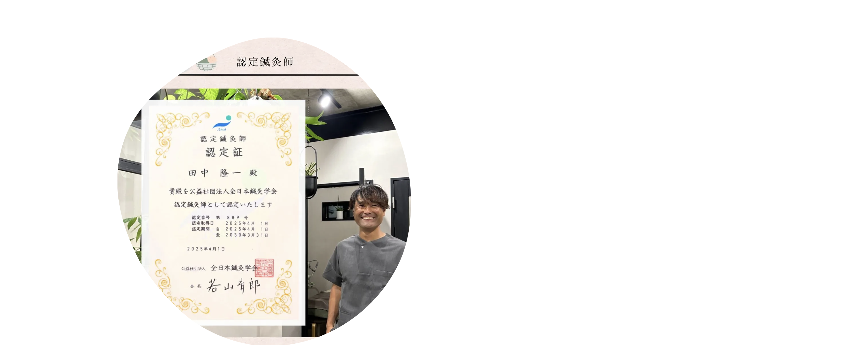 全日本鍼灸学会が定める認定制度に合格しています。鹿児島では4人の先生しか持っていない貴重な認定です。鍼灸により詳しい1人としてこれからも研鑽していきます
