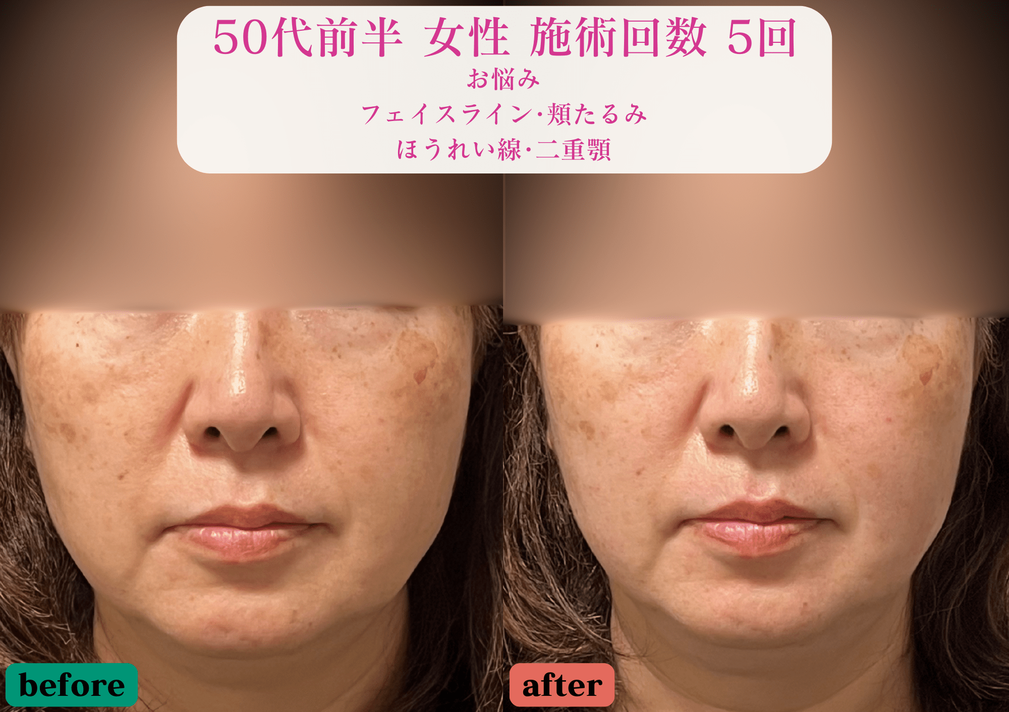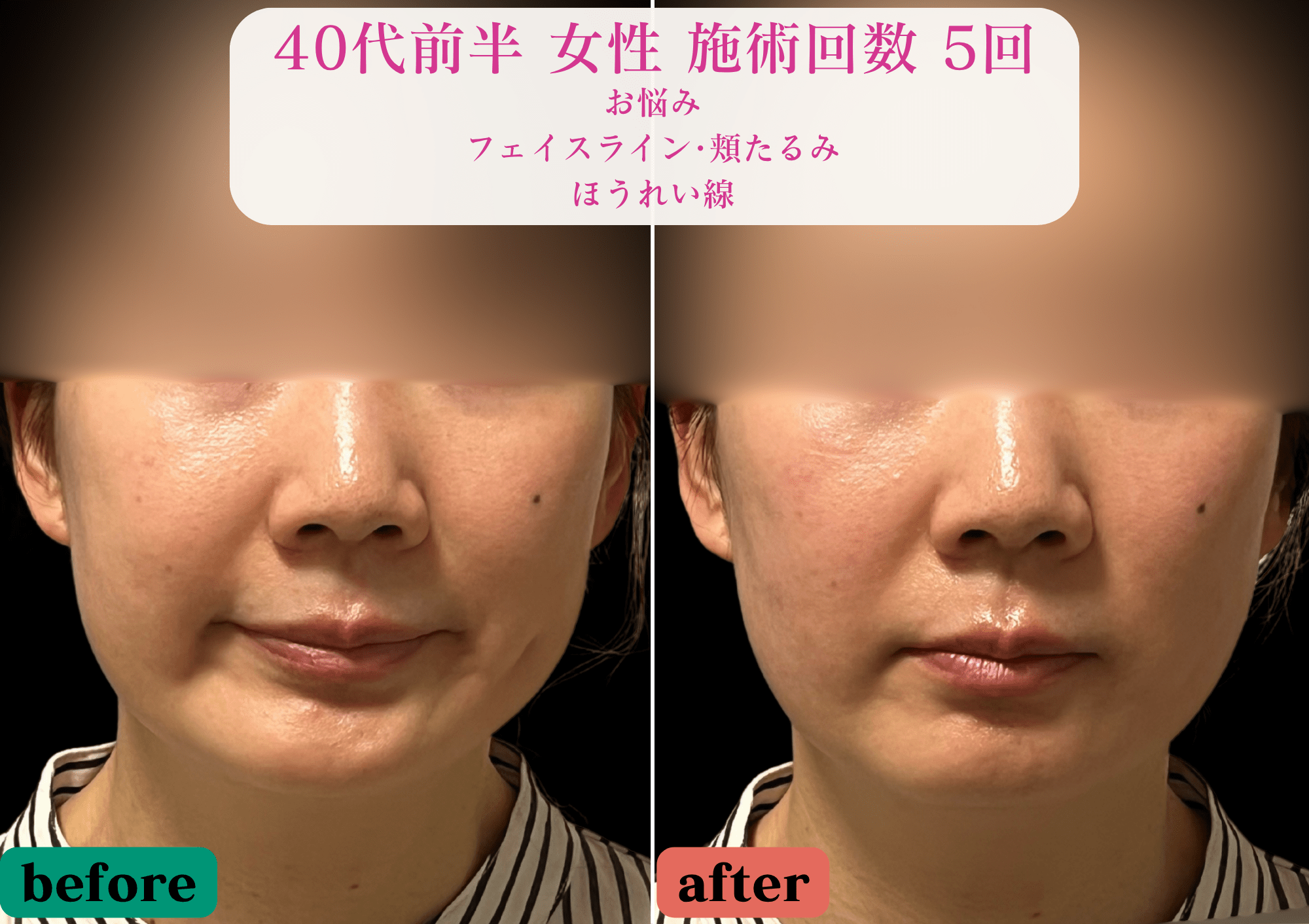 フェイスラインがキレイに出て頬の入りも高くリフトアップしています。