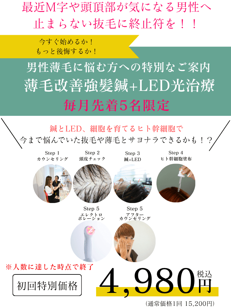 育毛鍼+LED/ヒト幹細胞上清液で髪の毛を取り戻す