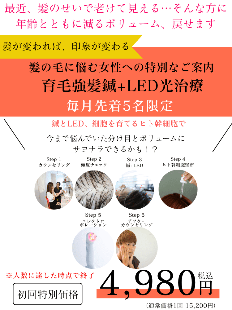 【育毛強髪鍼+LED+ヒト幹細胞ケア】をご用意しています