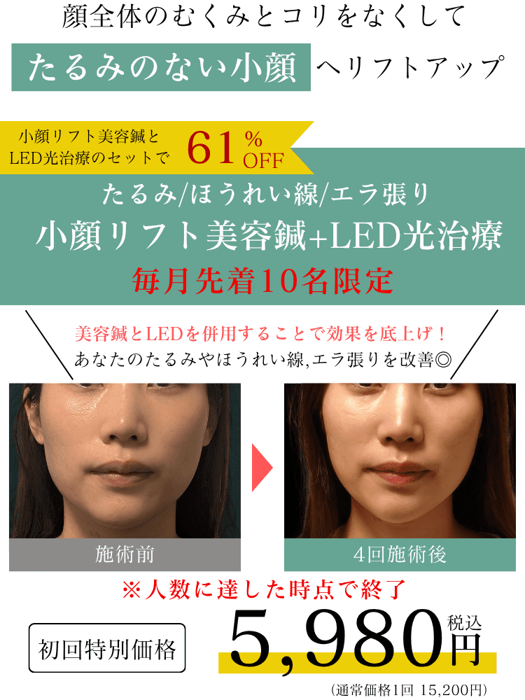 美容鍼とLED光治療で「今日の顔いいかも!」