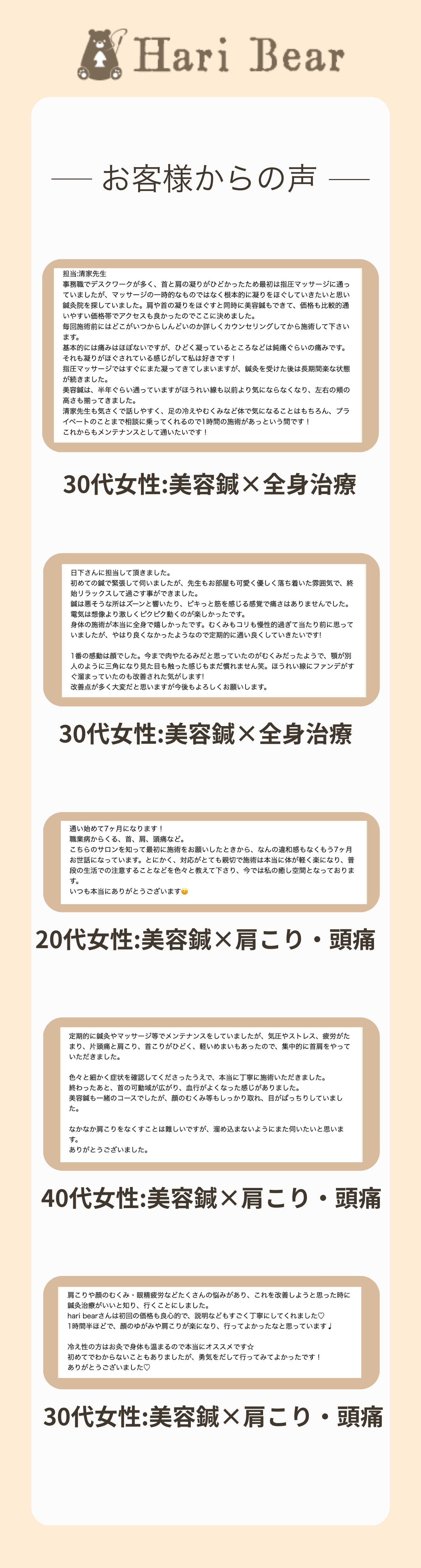鍼灸サロンHariBearの口コミ