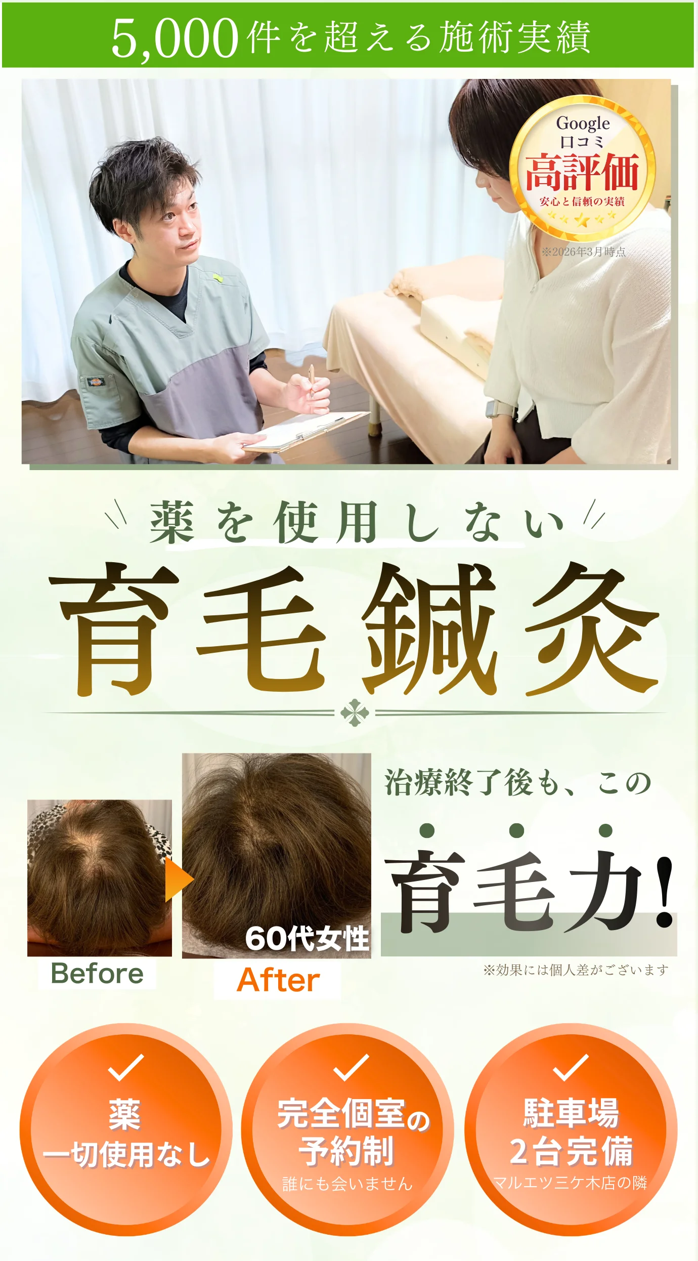 お悩みに合わせたオーダーメイド育毛鍼灸