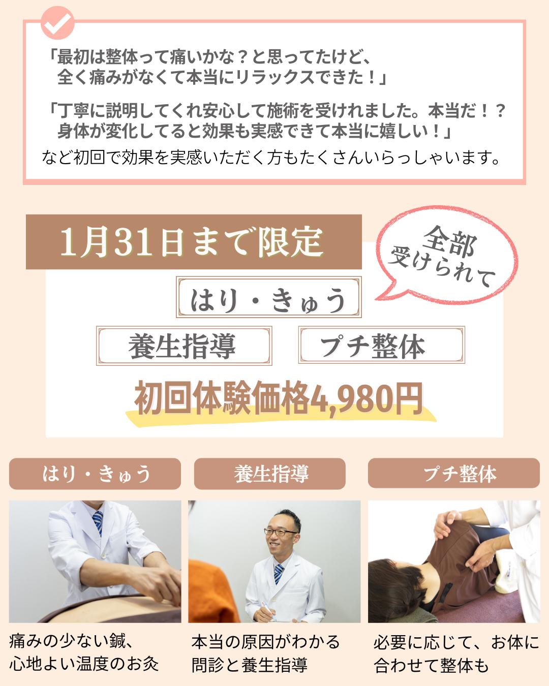 お身体全体をしっかりと診させていただいた上で、不調の原因が明確になり、気持ちもスッキリされたとのこと。