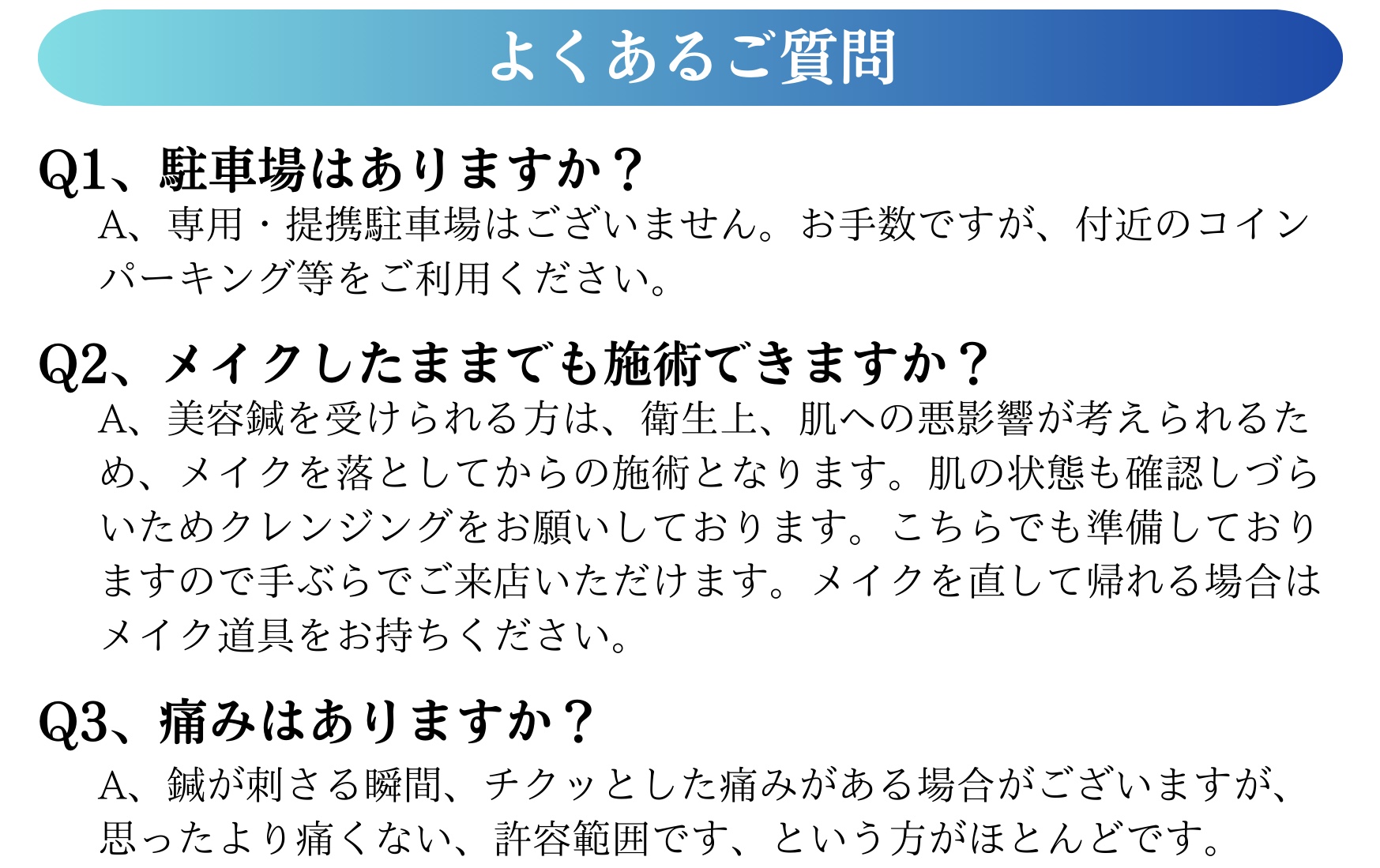 | ご予約に関して | 完全予約制のため、必ず事前にご予約をお願い致します。 |