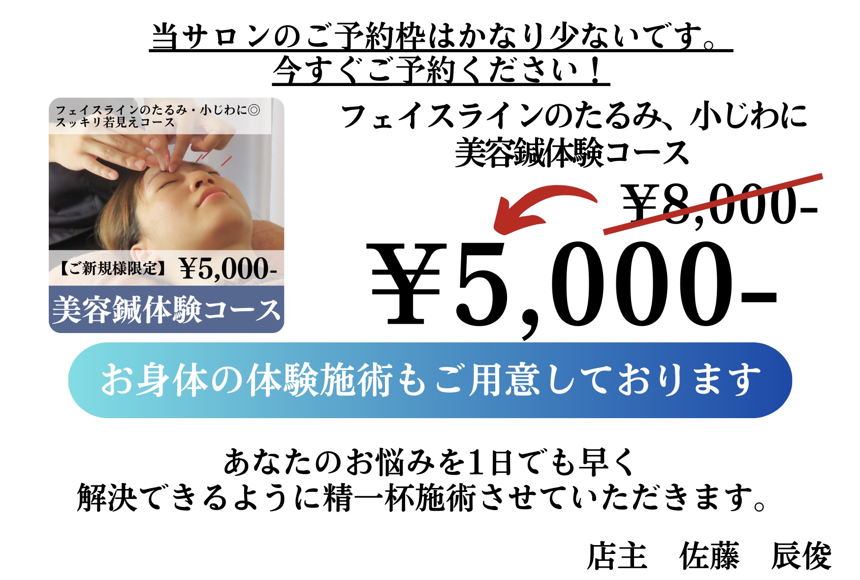 ご覧いただきありがとうございます。店主で美容鍼灸師の佐藤辰俊(さとう たつとし)と申します。
