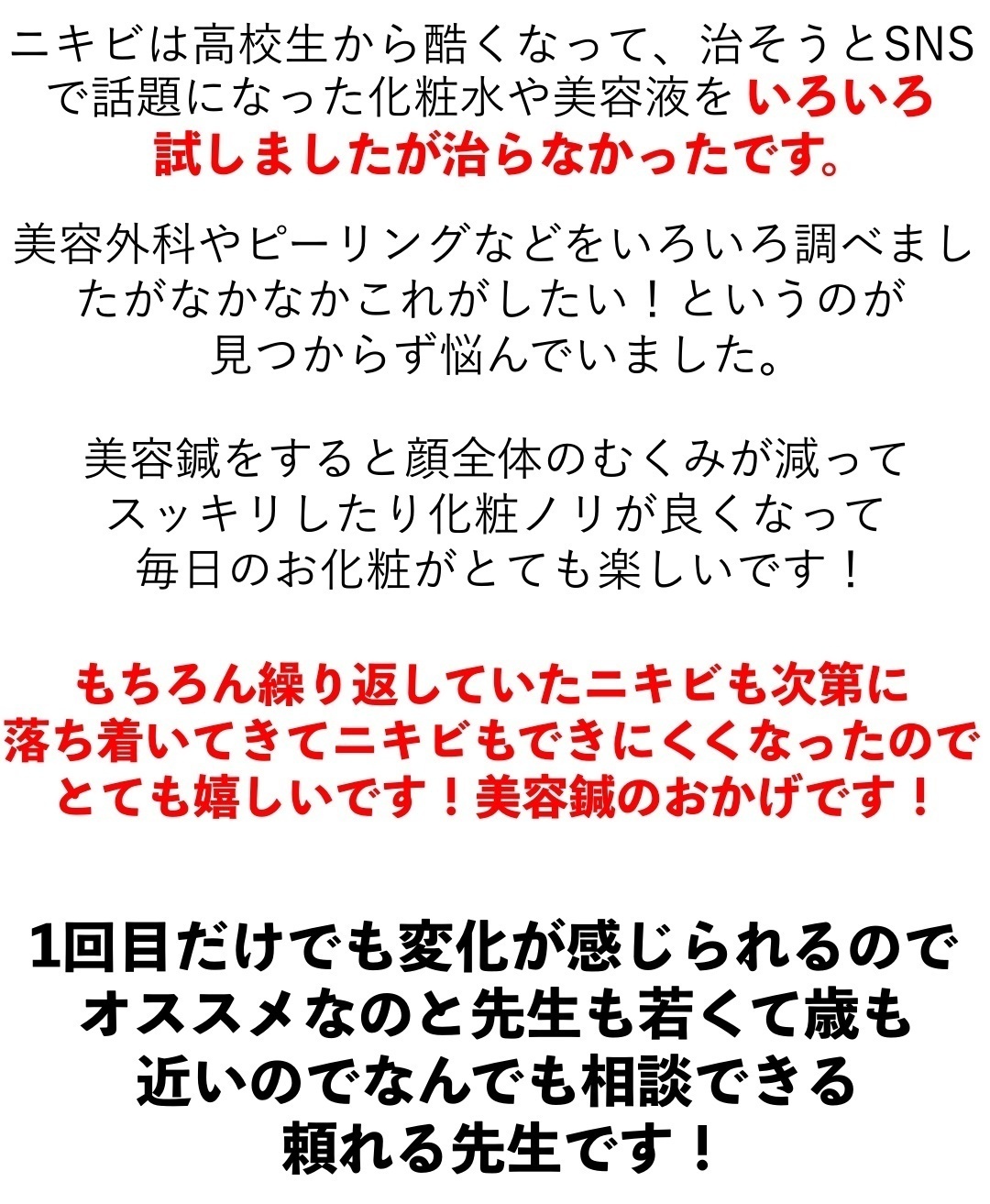 美容鍼をする度に肌が柔らかくなったのを実感しました(*^▽^*)