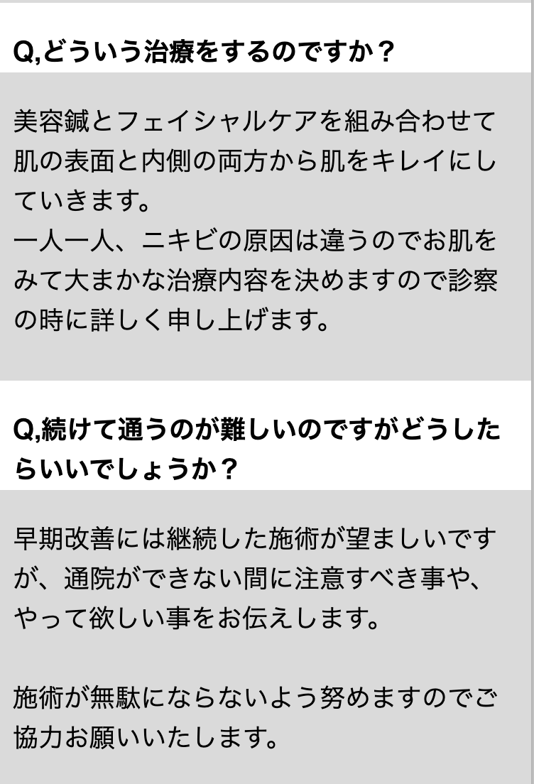 当サロンの「美容・ニキビ治療」