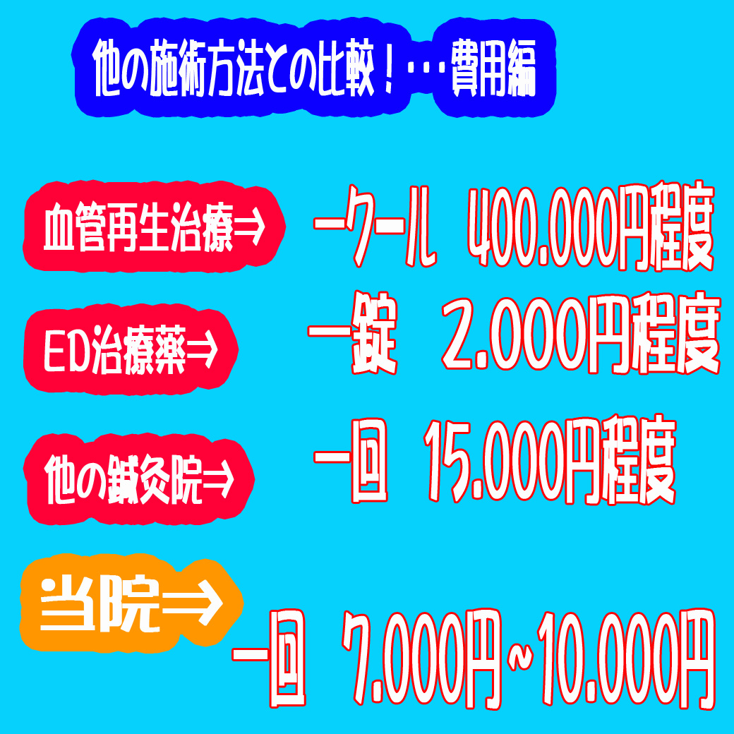 当院ではベテランの男性鍼灸師がED(勃起不全)のお悩みにも対応しています。ED薬は根本的な改善ではありません。整体と鍼灸でED(勃起不全)を根本から改善するお手伝いをさせていただきます。