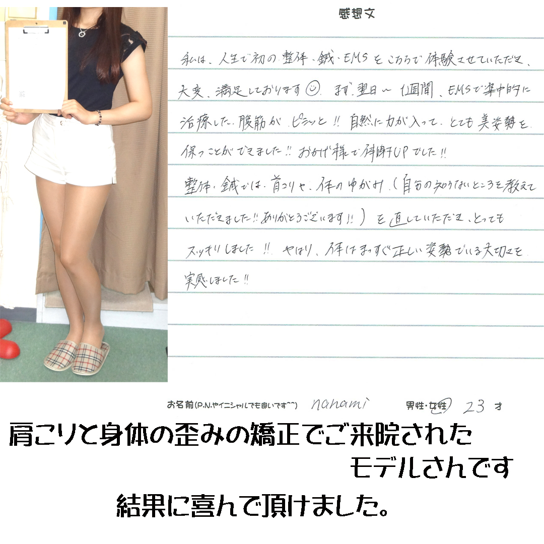 姿勢が良くなりリンパの流れも良くなるから、一回の施術でも浮腫が改善するので見た目にも効果がわかります
