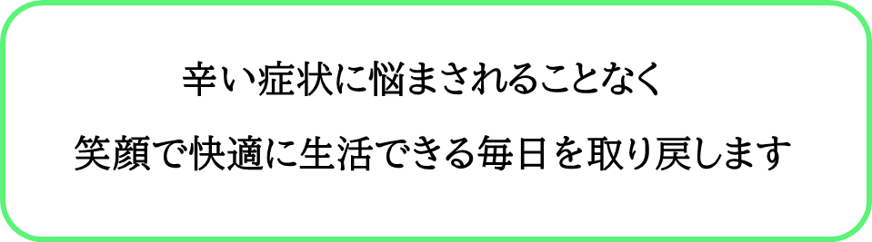 そして、その辛い症状から解放され「毎日の生活が笑顔で快適に送れる」ようになります。