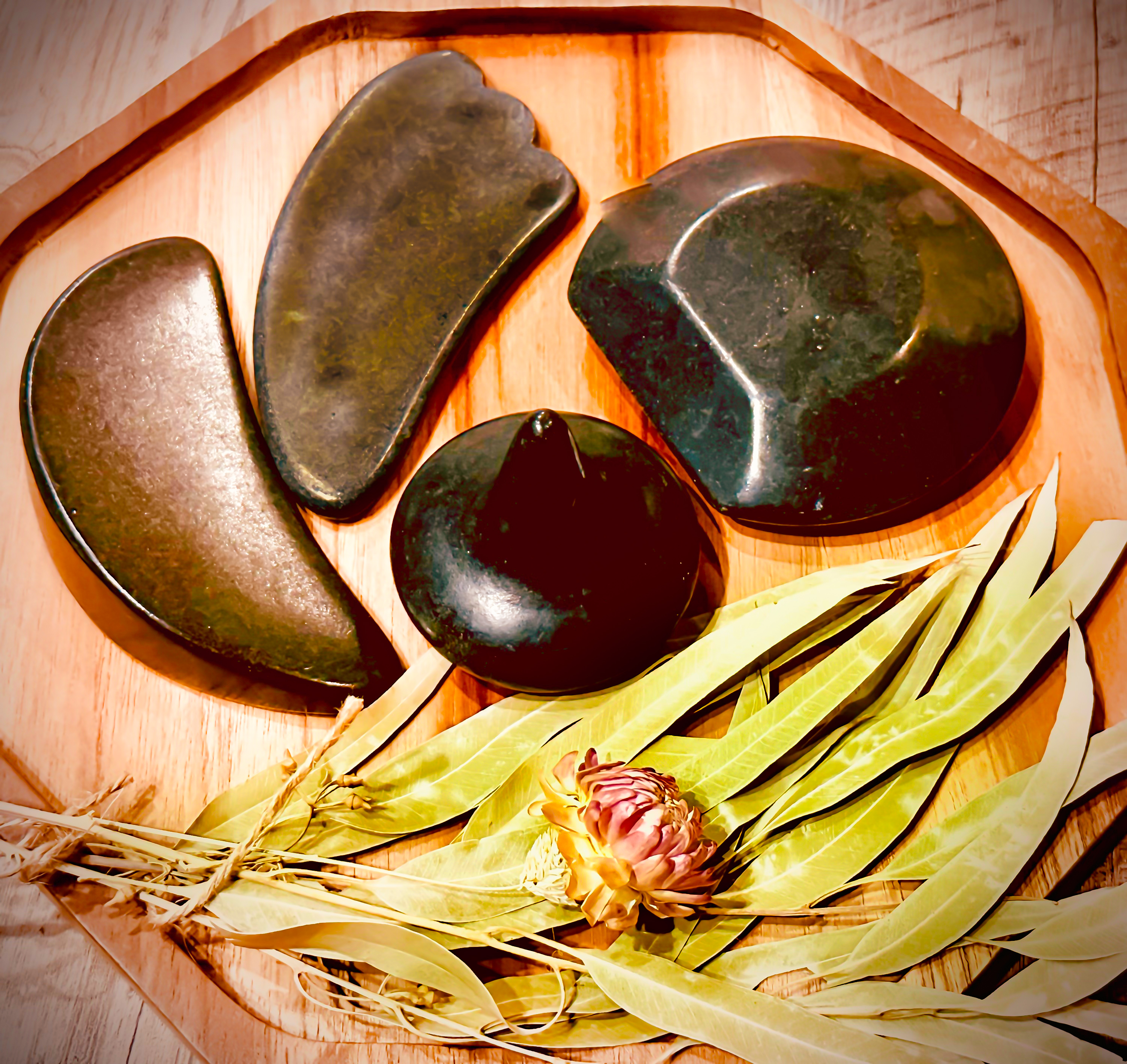 遠赤外線を放出するなめらかなストーンでのオイルトリートメントは手とはまた異なる気持ち良さのあるものです。