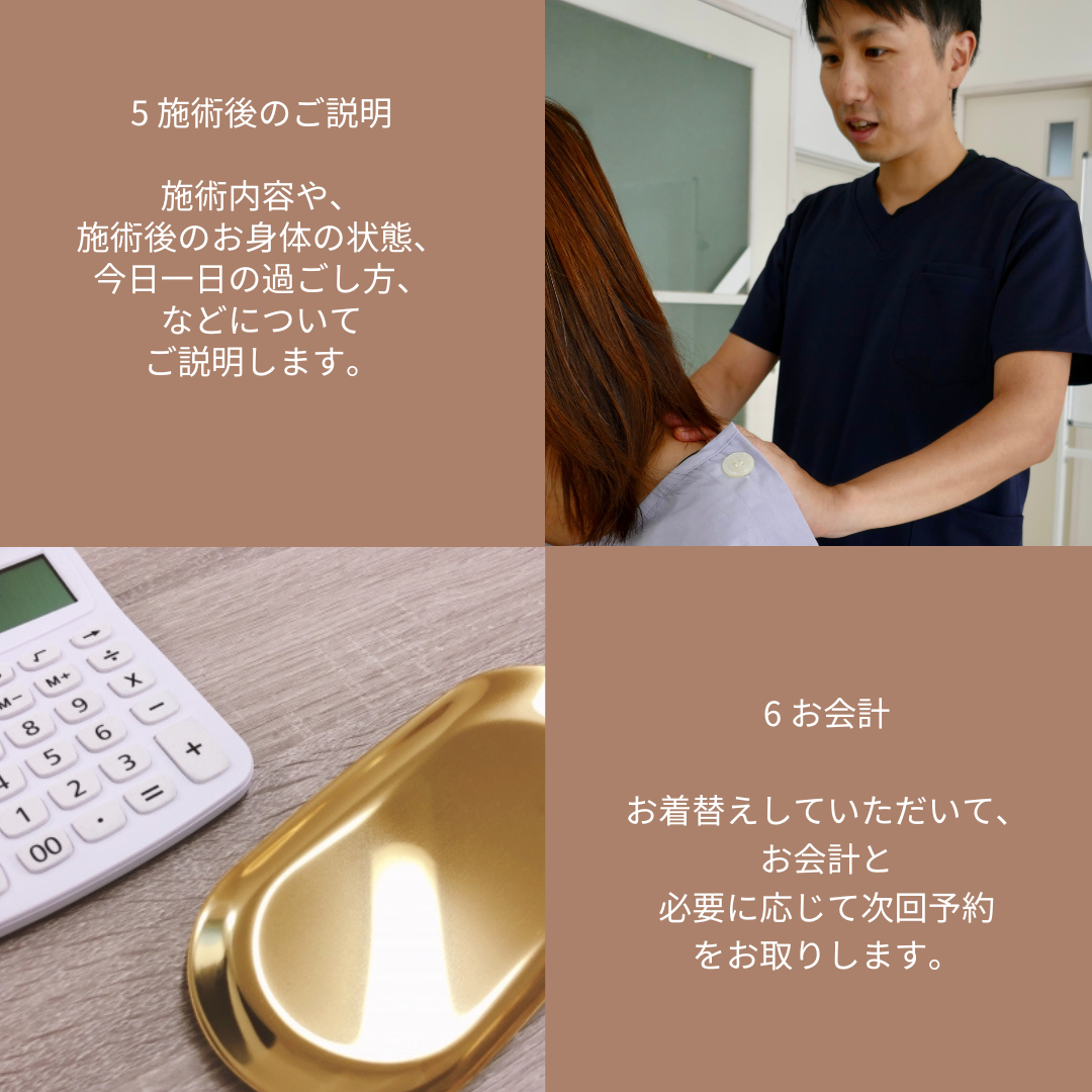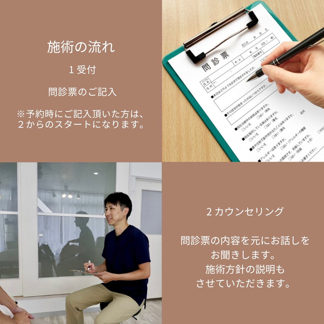 じっくりお話をお聞きしたうえで、施術内容などご説明します。