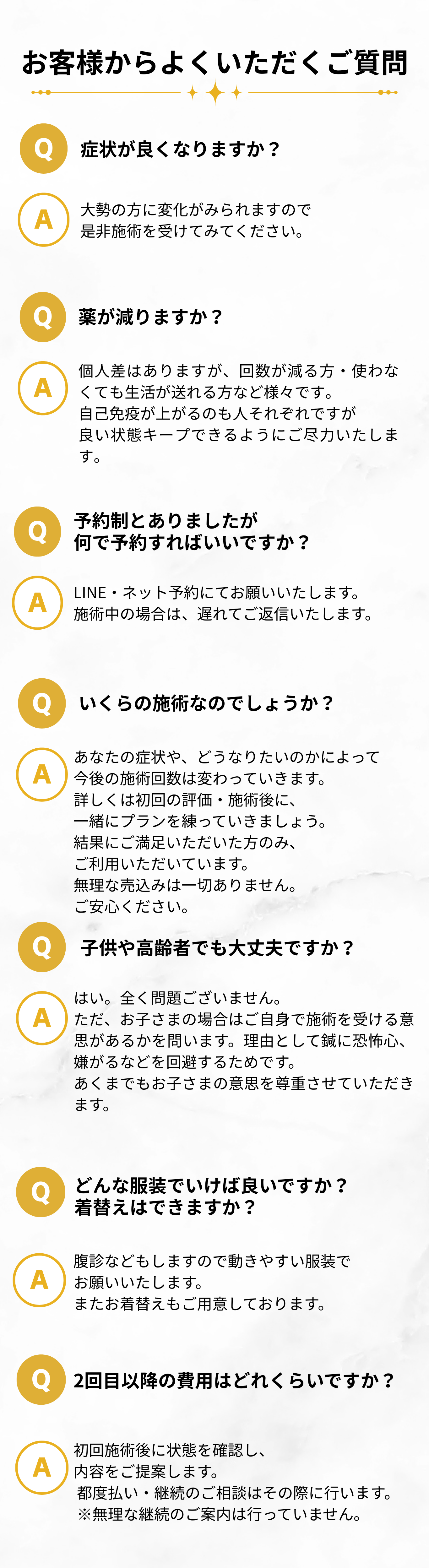 | ご予約に関して | 初めての方はお時間に余裕をもってお越しください。 |