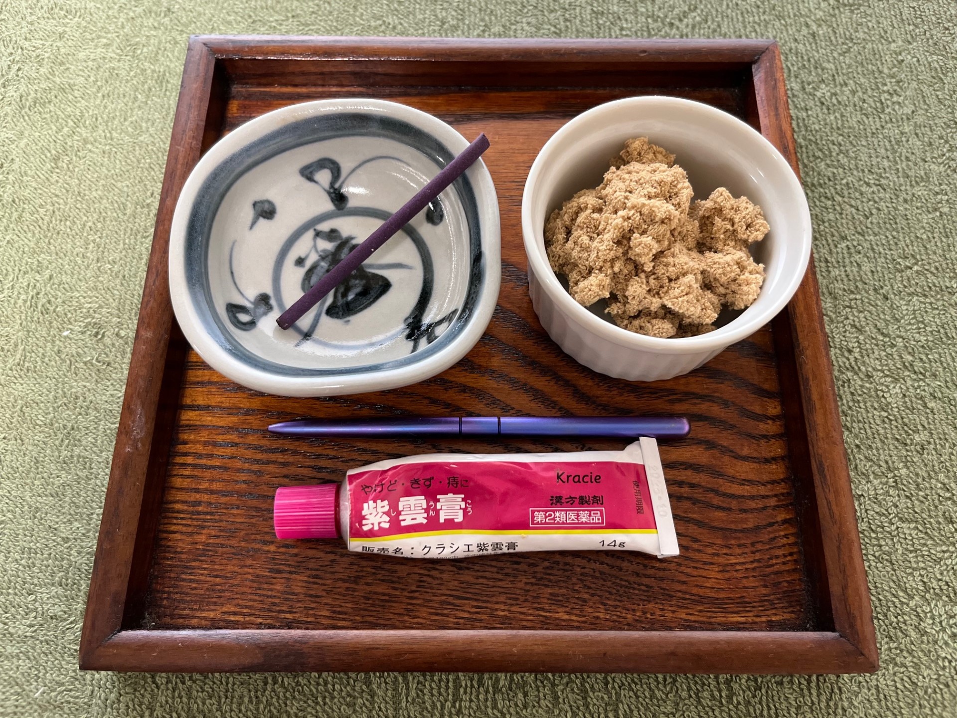当院で使用するお灸は、ドラックストアなどでも手軽に購入できる「せんねん灸」のような台座灸の類ではありません。艾(もぐさ)を手で捻り、直接、皮膚の上に据えて焼き切るという伝統的な手法で行います。