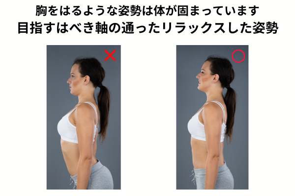 多くの人は姿勢を良くしようとして、胸を張ったり腰を反ったりします。