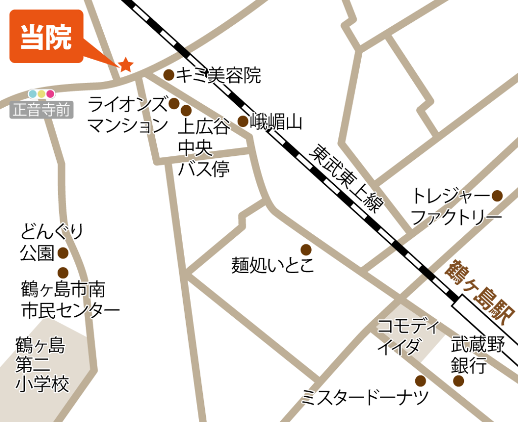 | アクセス | 治療院横に専用駐車場あり 東武東上線 鶴ヶ島駅より徒歩8分 東武東上線 若葉駅より徒歩14分 上広谷・坂戸駅南口線[つるワゴン] バス停 上広谷中央より徒歩1分 |