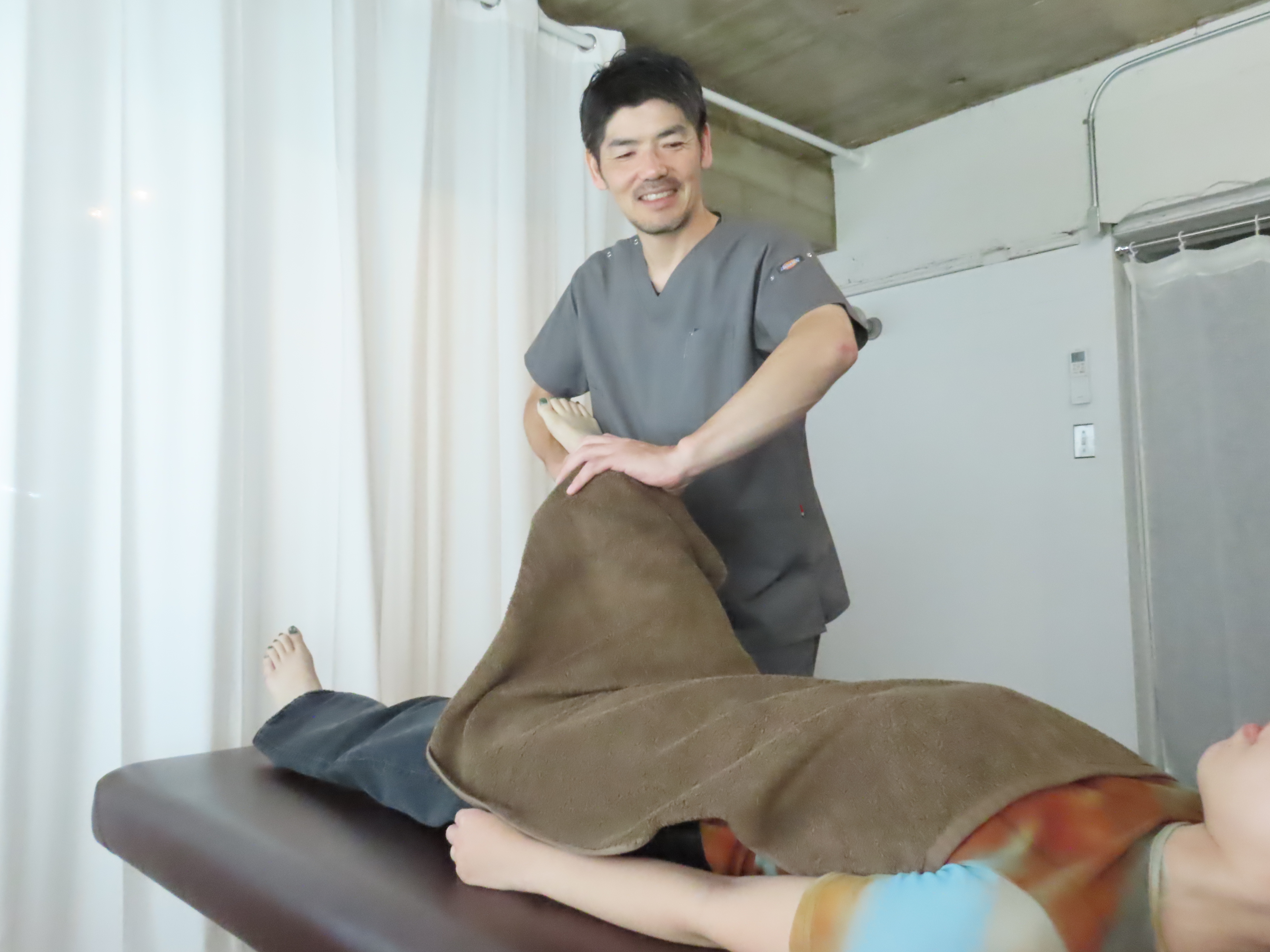 硬くなっていた筋肉や経穴(ツボと言われる部分)へ鍼やお灸を使い施術を行い、時には硬い部分は緩めたり、刺激を加えることで体の気の流れを調整したりという施術でお身体の不調を整えていきます!