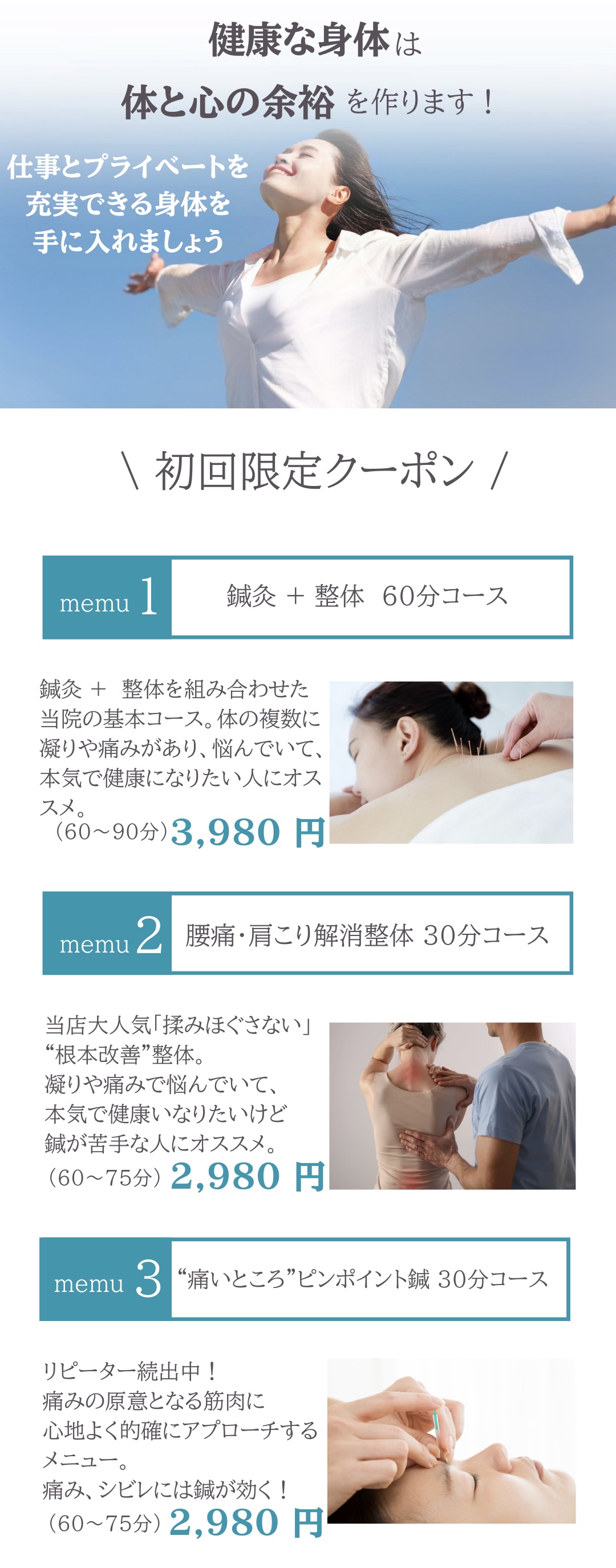 | ジャンル | 鍼灸治療 / 美容鍼灸 / 指圧・マッサージ |