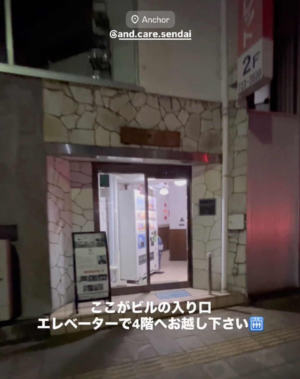 4階にANCHOR様があります。ANCHOR様の中に&CAREがあります。