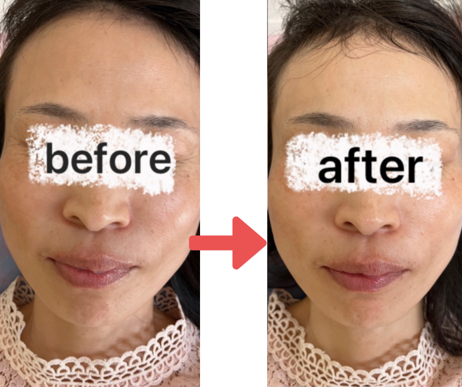 頬の高さがあがり、リフトアップ♪フェイスラインもスッキリし、お顔が全体的に引き締まりました。