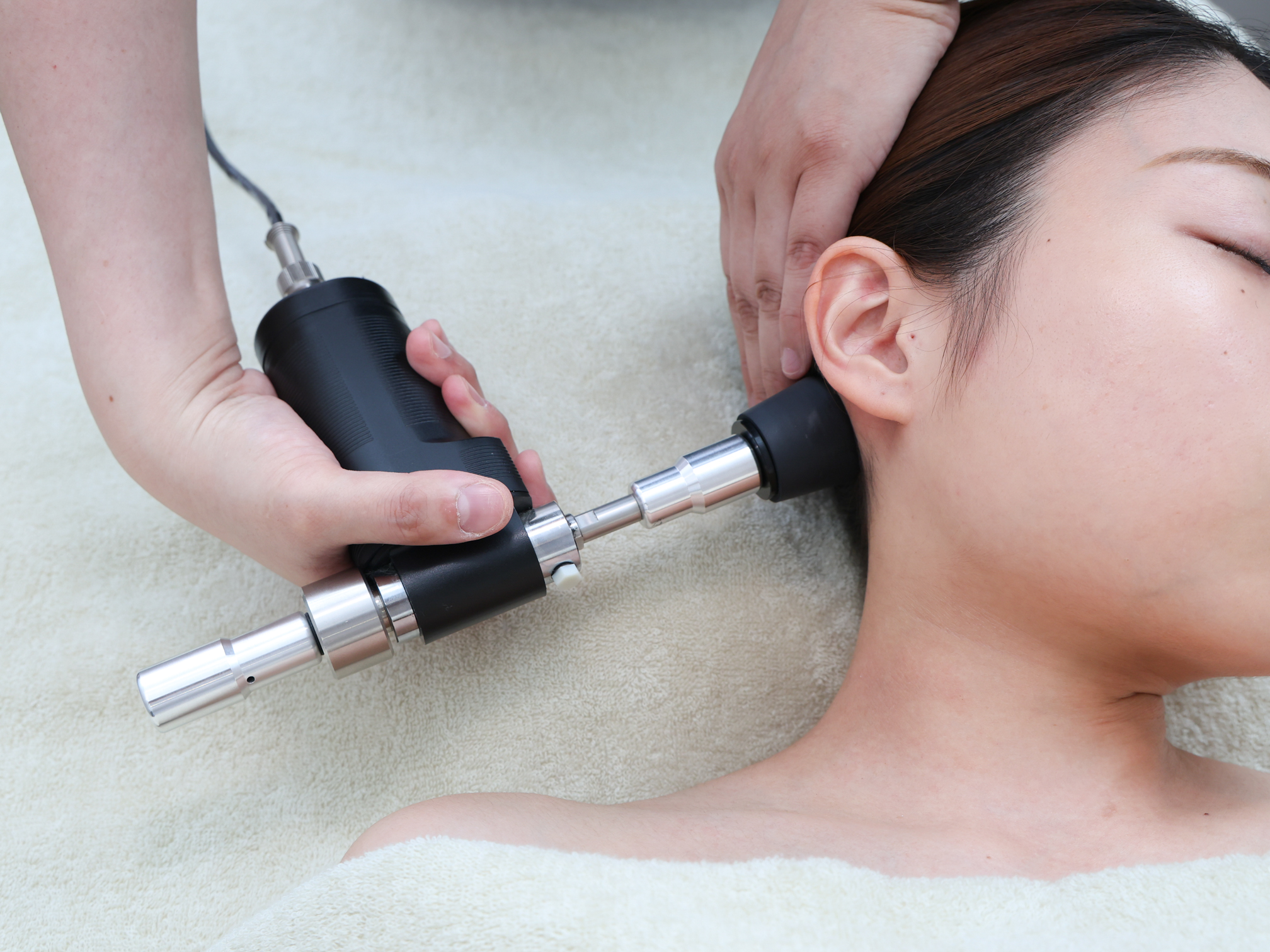 頭蓋骨に細やかな振動を与え整えていく小顔矯正。