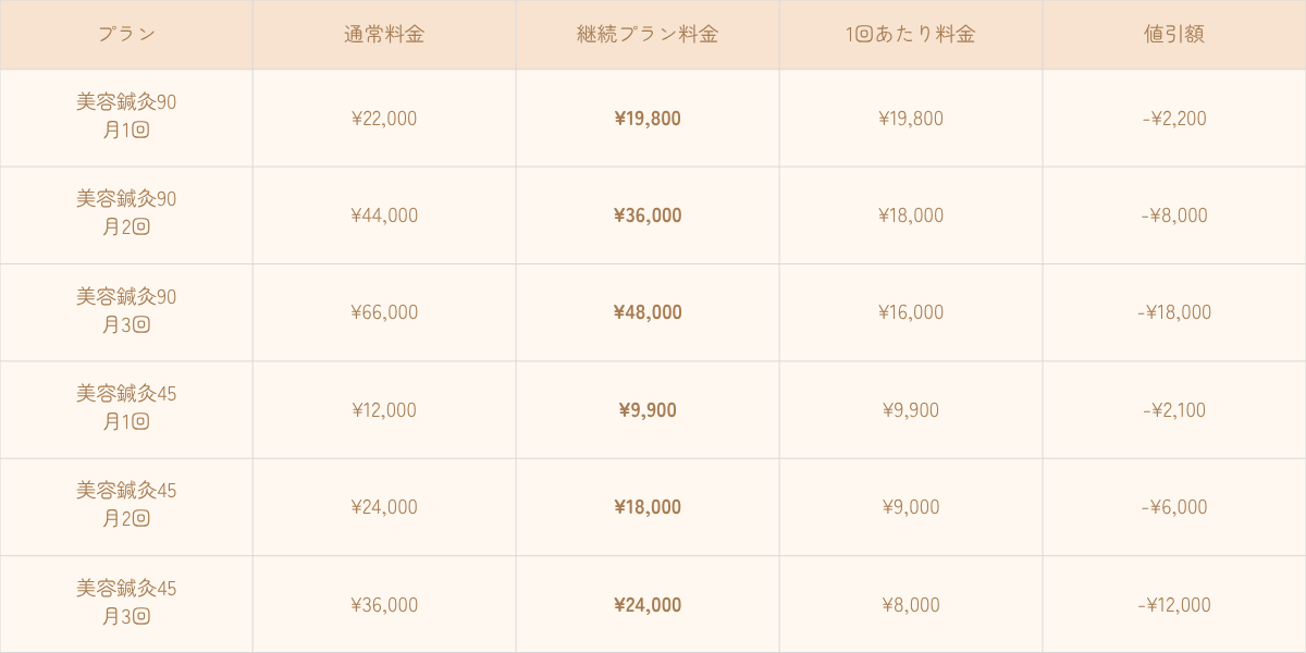 各プラン、月1回・月2回・月3回のコースをご用意し、