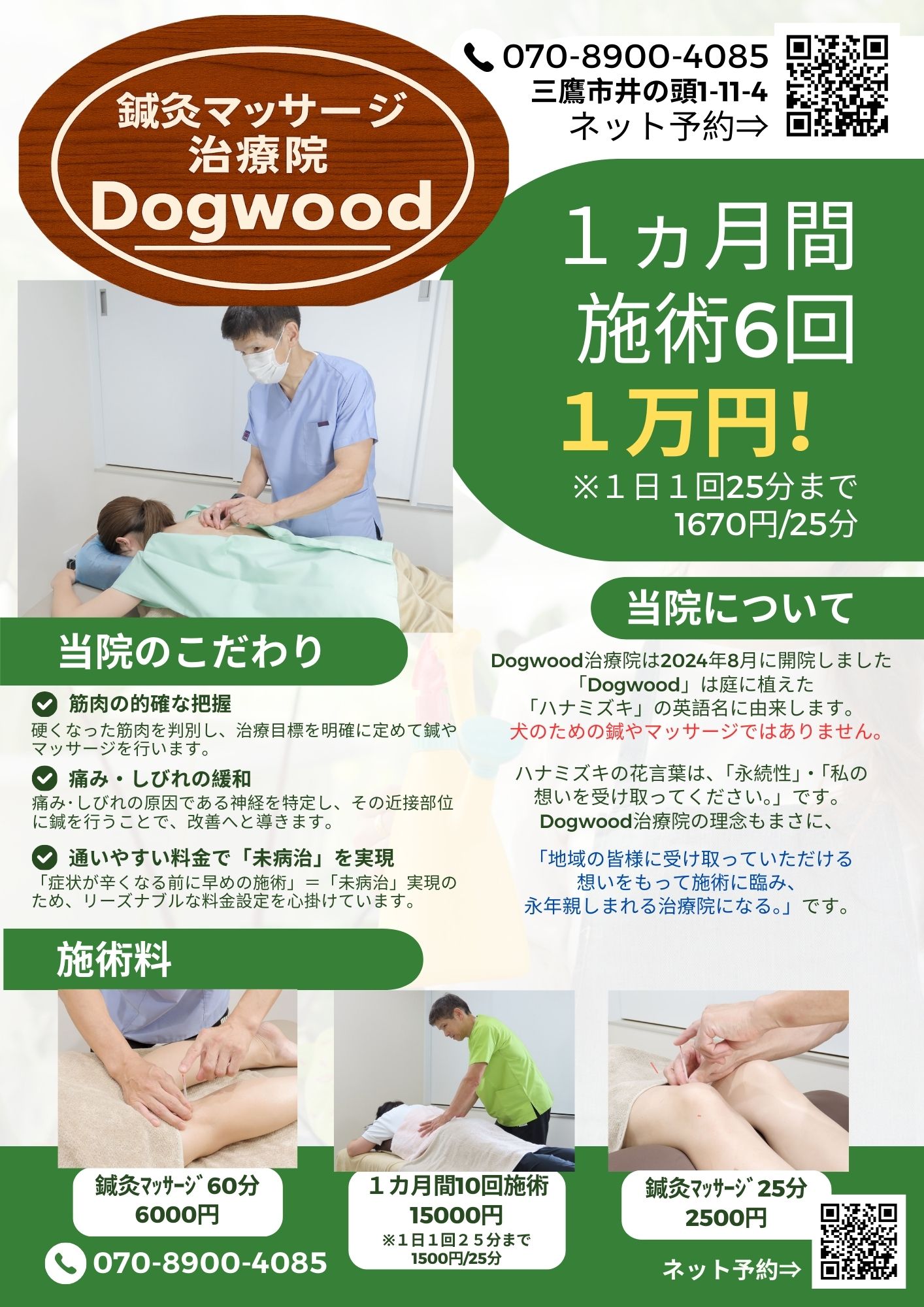 「マッサージ鍼灸治療院 Dogwood」を開院する運びとなりました。