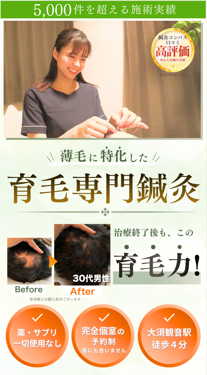 薄毛、抜け毛、円形性脱毛症の方 育毛鍼で今日から人生変えてみませんか?