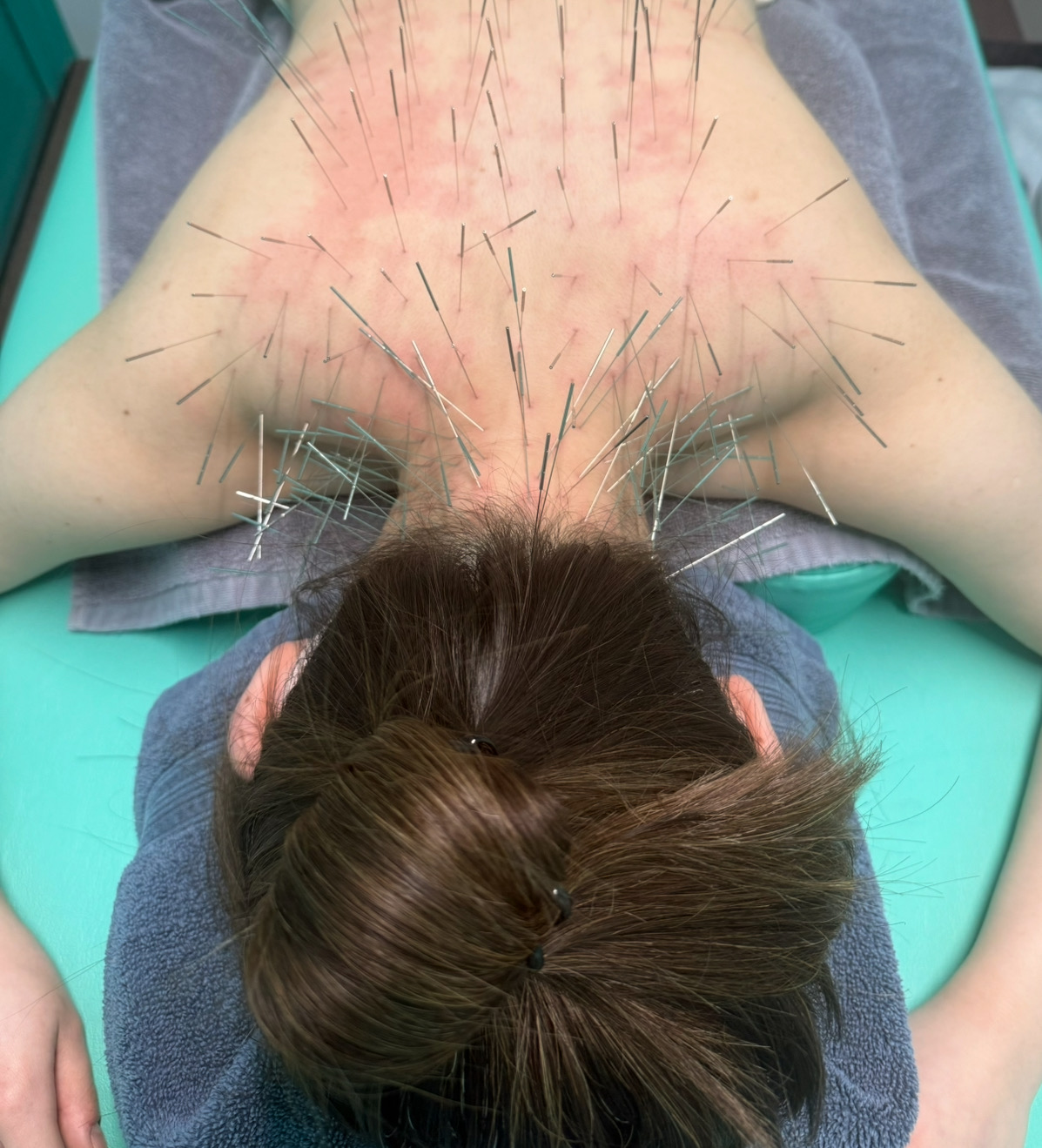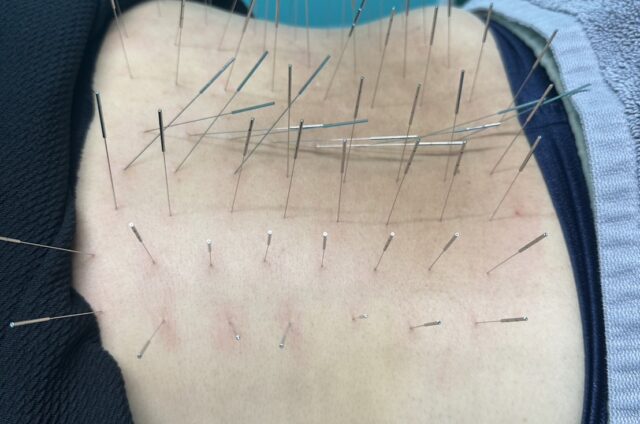 ルート(コリ)に沿って、刺激を伴う鍼を打ち込んでいきます。
