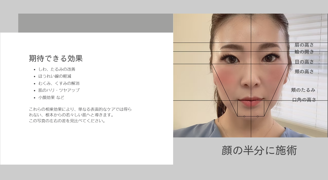 「施術直後から顔が引き締まり、頬の位置が高くなった感じ。翌朝の化粧ノリも格段に良くなり、鏡を見るのが楽しくなりました。」