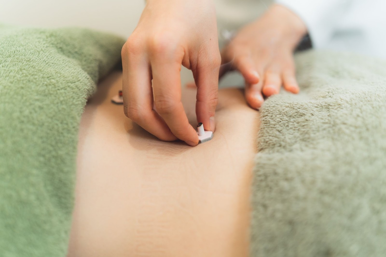 お灸は、もぐさを燃やして体のツボに温熱刺激を与える施術です。