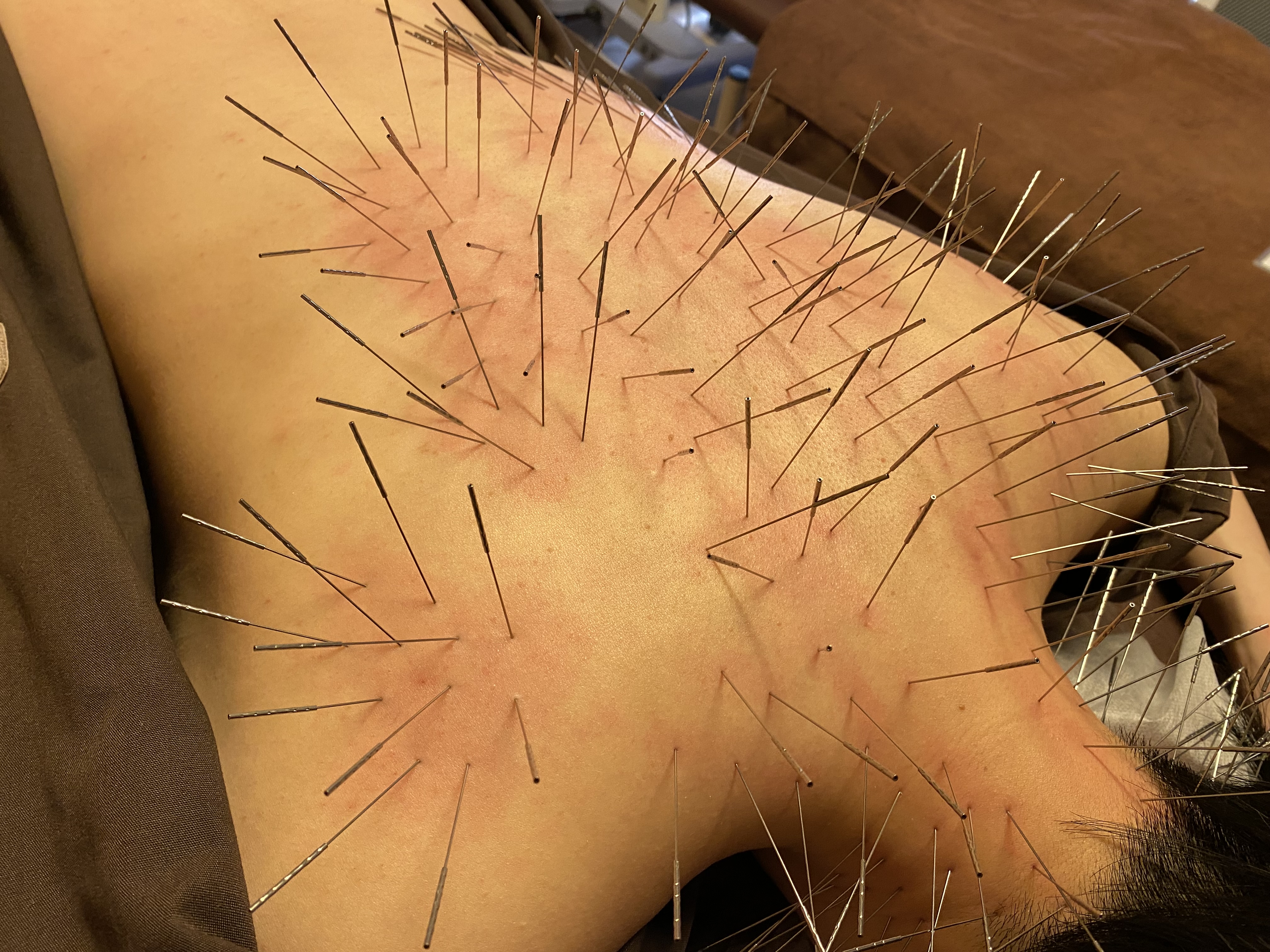 ルート治療で身体に使う物と同じ太さの太い鍼を使い