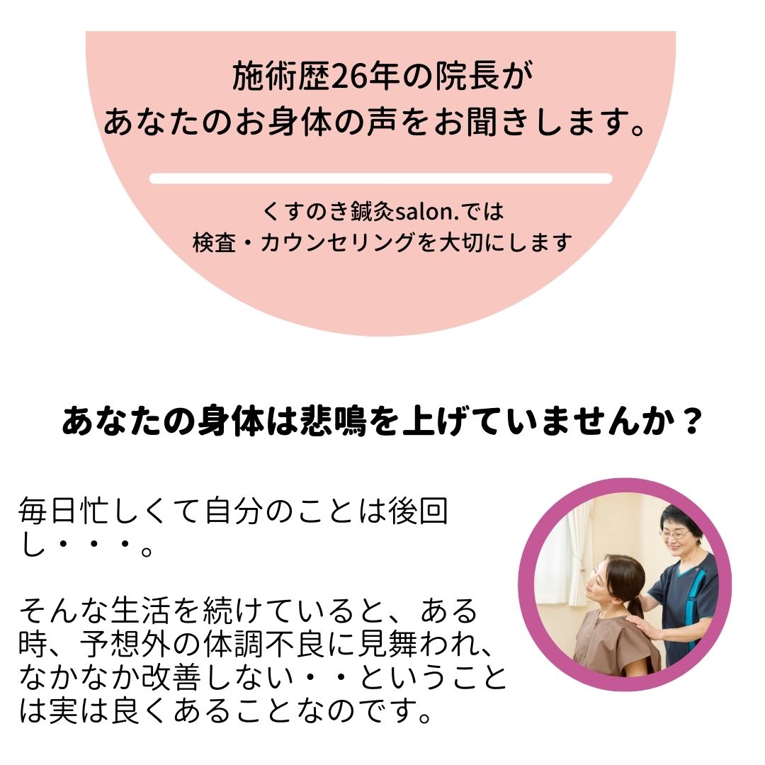 くすのき鍼灸salon.ではカウンセリングと検査をていねいに行い、